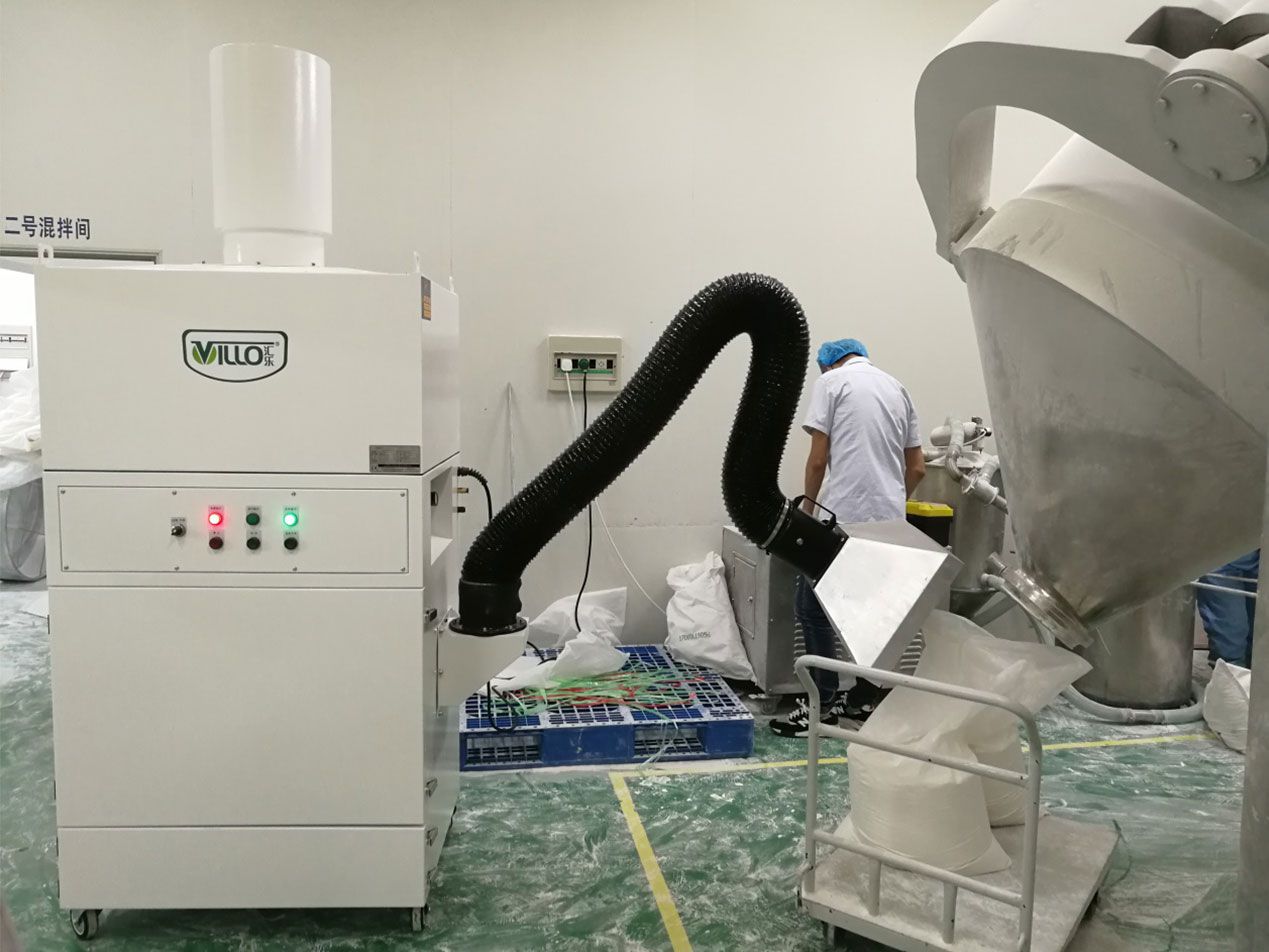 稱量包裝時產生的粉塵屬于飄揚性粉塵,此類粉塵量的大小主要根據下料的份量而變化,針對此類粉塵,需要結合員工的操作習慣,料口尺寸及粉塵量大小作為參照進行設計選型。
